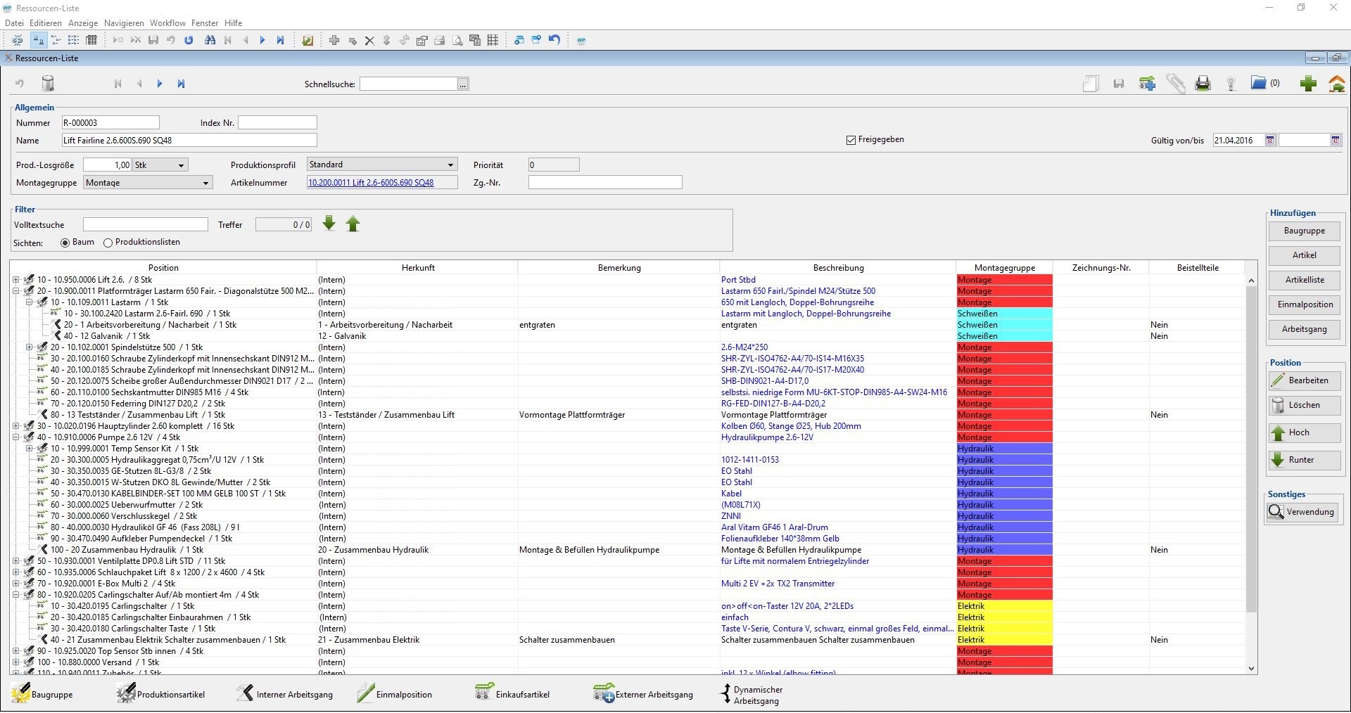 Erzeugen von Produktionsaufträgen, Einplanung von Ressourcen und Kapazitäten, Ermittlung der Bedarfe und Durchlaufzeiten. Umfangreiche Vor- und Nachkalkulationen inklusive Handhabung von Fertigungsalternativen.